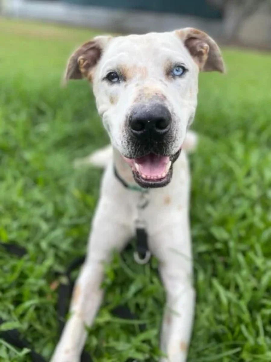 Riddick is a deaf, desexed, 5.6yo desexed male Bull Arab x (approx 32kgs) who has absolutely thrived in care with one of our amazing trainers these last few weeks! Riddick also has heterochromia but does not have any sight issues. ❤️