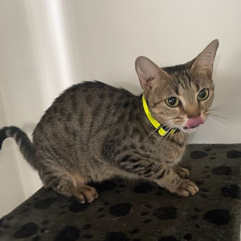 Hi I'm Indi,You cannot help falling in love with my TINY physique and beautiful BIG green eyes. My foster Mum thinks I am special. This is because of being very astute, no fear, a constant brrrp brrrp brrrp talker but I do meow too. I run to look what a strange noise is and even sit on my tower watching the Dyson do its duty. Don't think when I am awake you can go anywhere in the house on your own! My job is to make sure you are ok 🤣