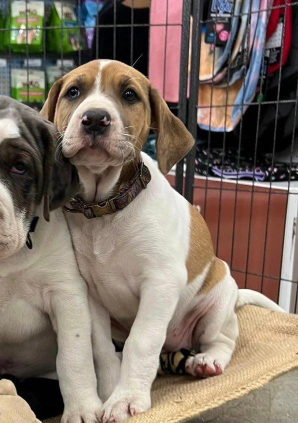 Mum Bella has a *lovely* temperament, and has been a fabulous mum to her pups. We think Bella is a Bull Arab X—she’s between 25 and 30kg. Dad is unknown but from some of the pups faces we expect he was a Mastiff of some sort. Beyonce weighed in at almost 8kgs just a few days ago, so we expect she will be a *big* girl. Her carer says she is very playful and the most energetic pup of the litter. She is very attached to people and follows her carer around everywhere.