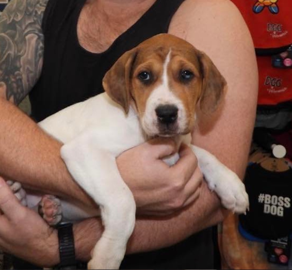 Mum Bella has a *lovely* temperament, and has been a fabulous mum to her pups. We think Bliss is a Bull Arab X—she’s between 25 and 30kg. Dad is unknown but from some of the pups faces we expect he was a Mastiff of some sort. Bliss weighed in at just over 8kgs just a few days ago, so we expect she will be a *big* girl. Her carer says she is the quietest pup of the litter, usually found napping while all the others are playing.