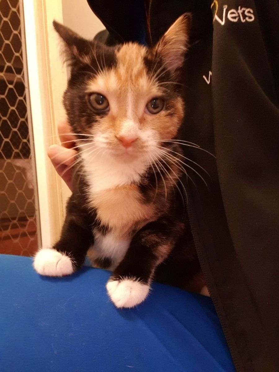 Tori was found in a tip and brought into the clinic on February 26th, at approximately 5 weeks of age underweight, dehydrated and suffering from cat-flu. With care and medication she quickly thrived and bloomed into a gorgeous little kitten.