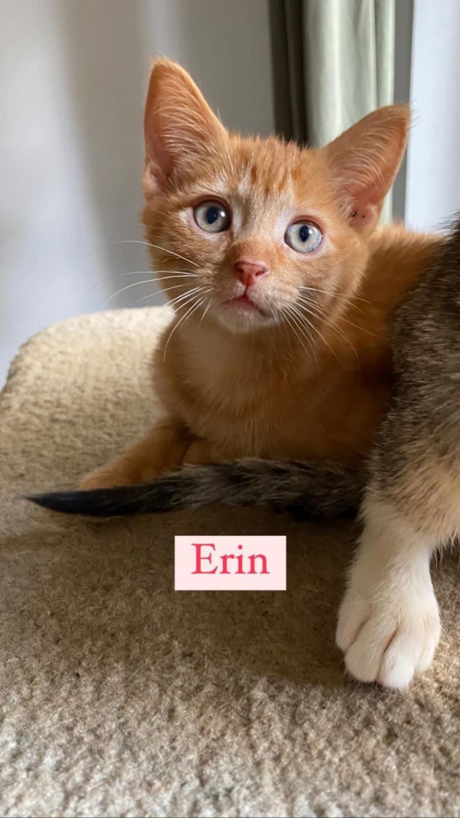 Erin is a beautiful ginger girl and very friendly. She loves a pat and is happy to have cuddles with you. She loves playing with wand toys and rumbling with her siblings.