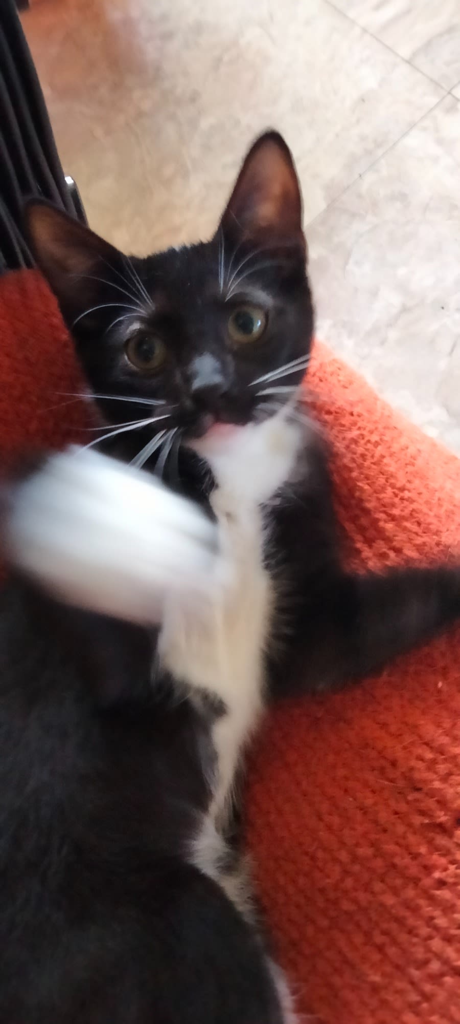 Milo has been socialised with multiple other kittens, cats and a bulldog and various new visitors and she is not apprehensive at all.