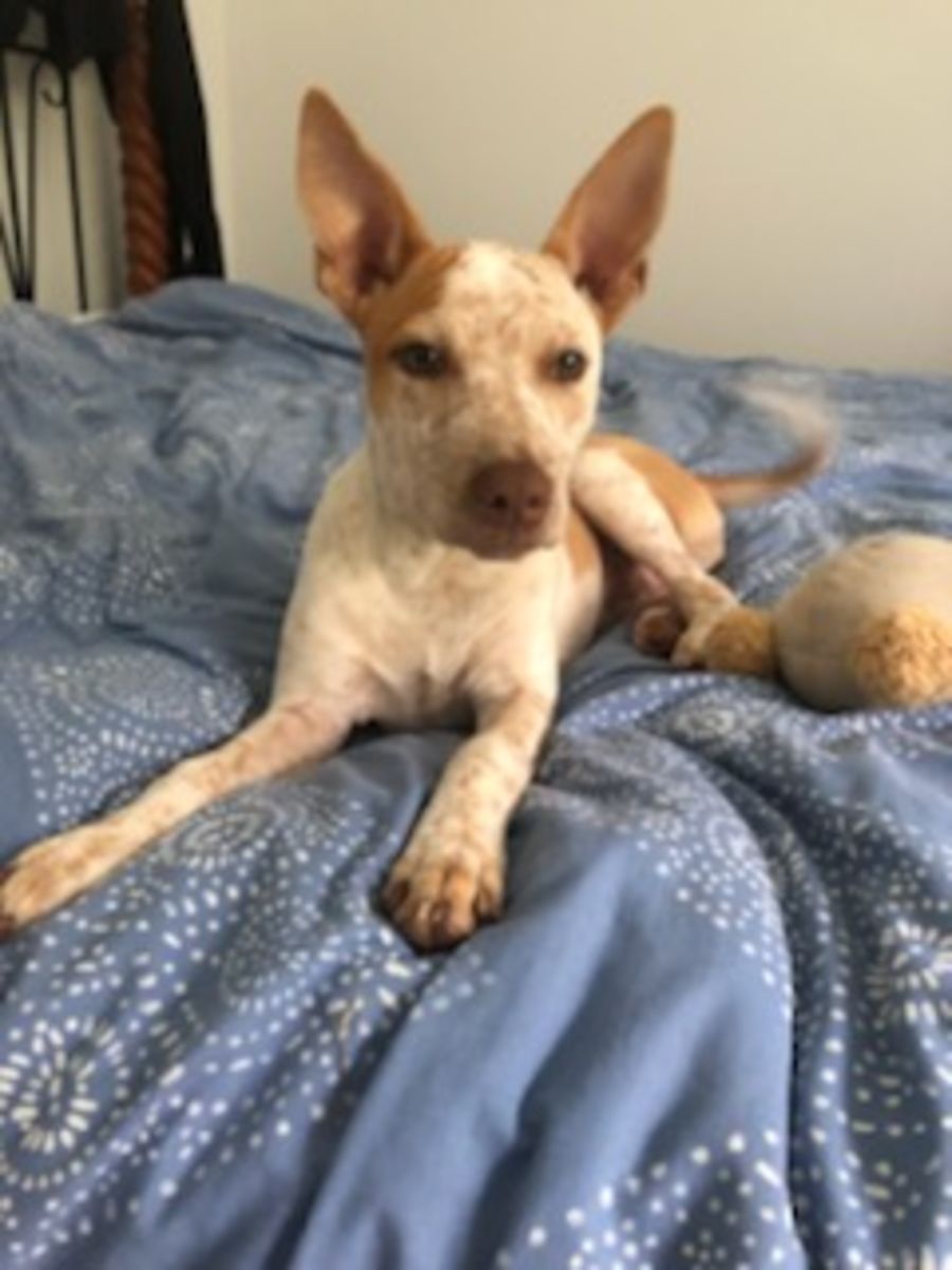Nelly is a playful and energetic young dog so would suit a large yard or even a property. Or someone who is quite active and would ensure she gets a good run and play every day. She is very intelligent and a quick learner, but will definitely benefit from ongoing training so will need someone committed to this. Nelly is very eager to please and always so happy -she does know the commands - sit, stay, down and come but will struggle with concentration if distractions are around. Nelly is great with people and other dogs so would do well with another canine friend to run around with. She has been exposed to chickens and horses but as still young will need ongoing supervision being around farm animals. Nelly is very cuddly and will take pats and attention all day long. You do have to meet this little darling to appreciate what a sweetie she is. She is super fun to have around and will be great with kids and definitely another playful dog in the house. Nelly does sleep inside and is now housetrained and she certainly loves having people around as much as possible. A fenced yard/property is a must.