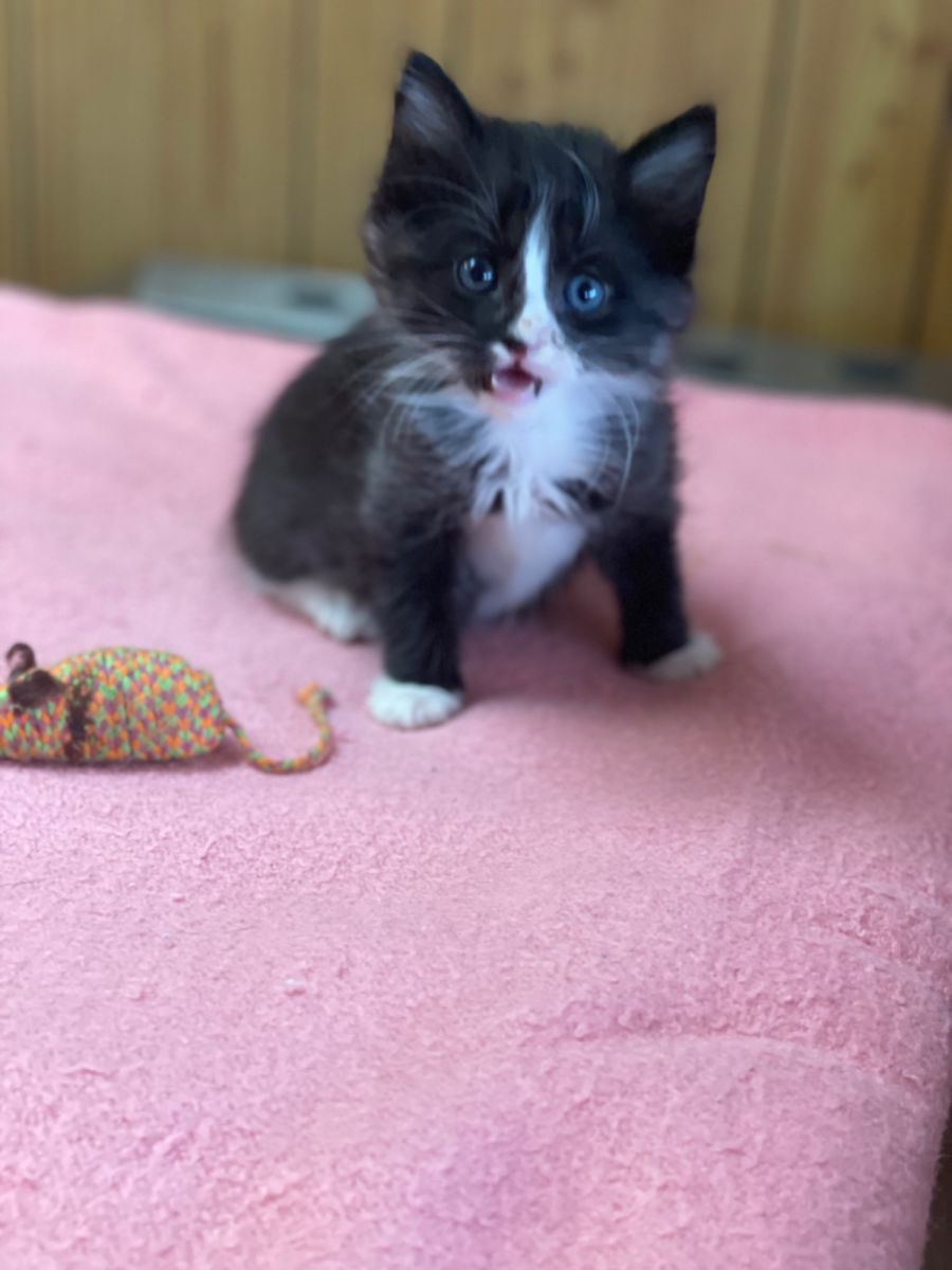 Bobby is shy at first but warms up to become a bouncy little ball of joy! One of his favorite things is settling in somewhere for a goooood catnap!