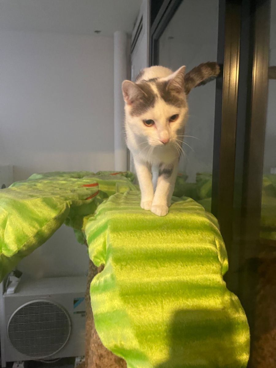 Latte loves humans and their attention. He tolerates other cats and likes dogs as long as they respect his boundaries.