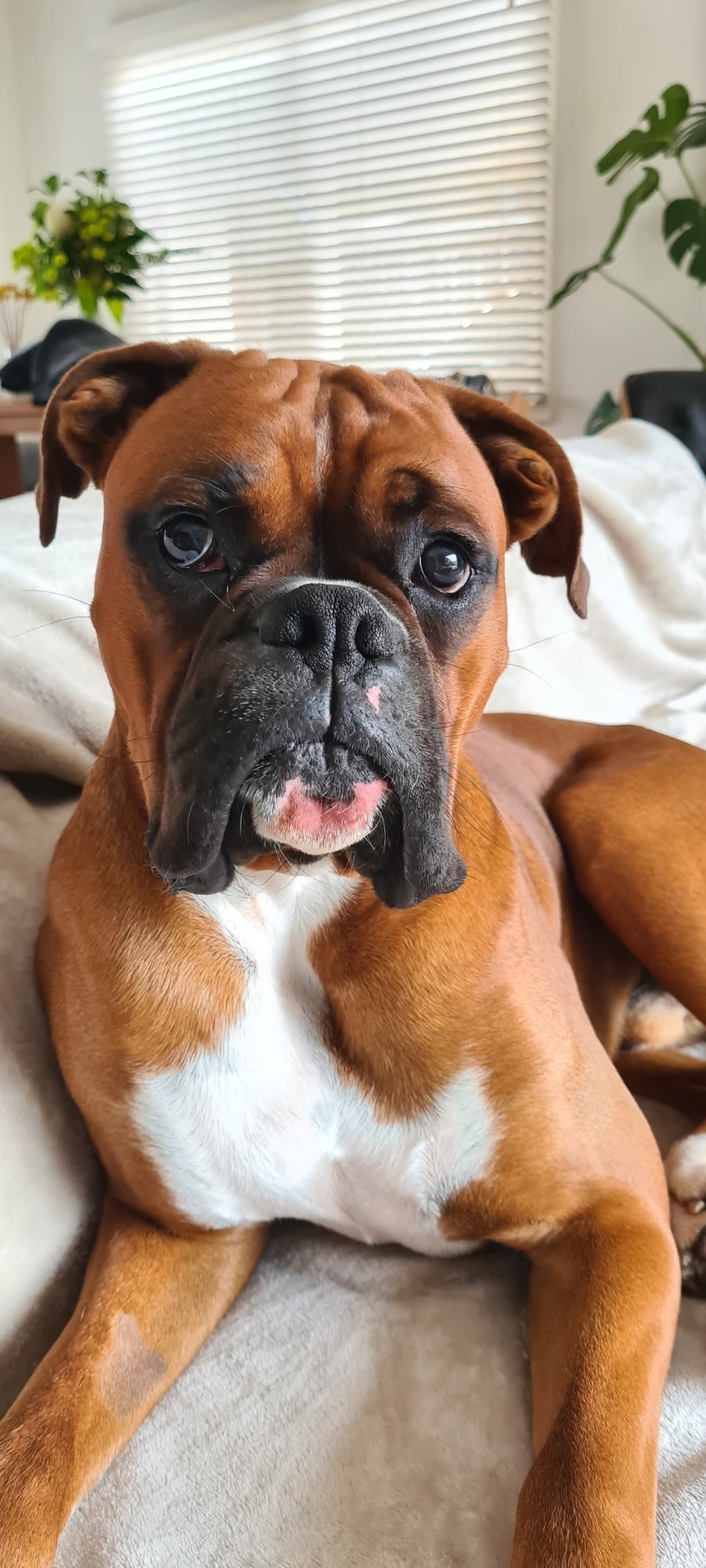 He would benefit from a home with a big back yard and a family who will give him lots of exercise and stimulation to prevent him getting up to boxer mischief!