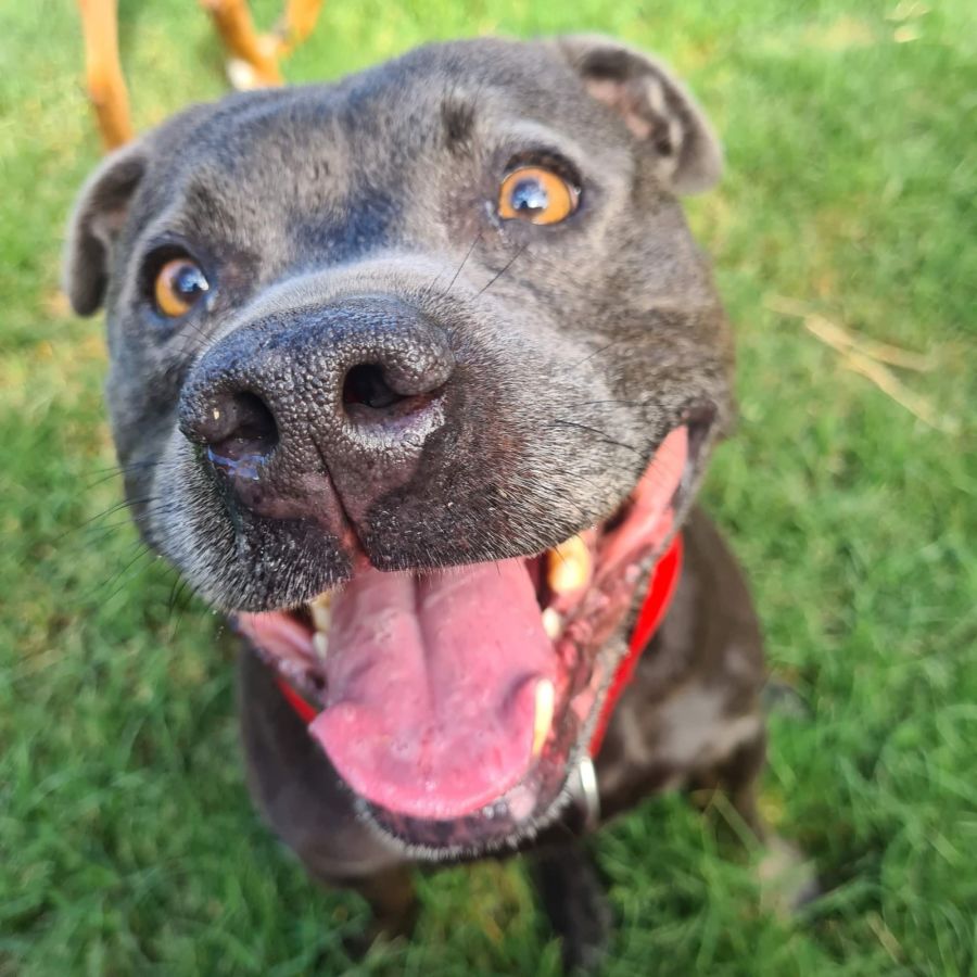 Here is a bit about Spud: I'm a gerogous blue staffy boy and I'm 6 years young. My life hasn't been the best lately, I was found by the lovely people at Helping Hearts at a local pound, they could see some health concerns and wanted to help me so I was saved and pulled out of the pound back in January. Since being in care I had several health issues investigated and unfortunately some of them are chronic but it isn't slowing me down for now. Despite that I'm a happy go lucky boy, I love to follow you everywhere you go and I'm very friendly. I love humans more than anything in the world and I'm very playful with other dogs. Cats are not my cup of tea so a home without them would be best.
