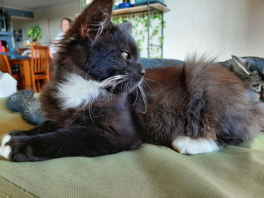 Dale is full of beans and loves to play with his kitty step brothers so he would like to have lots of room for activities. Dale is extra smoochy and absolutely loves to snuggle as well as play, karate in the garage anyone? He is great with kids and enjoys a belly scratch so would fit in with pretty much any family.