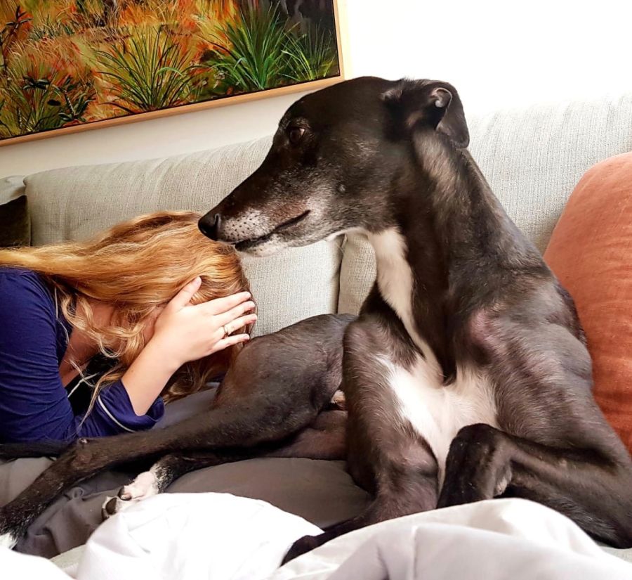 Dogs are pack animals and Greyhounds, in particular, are very familiar with being surrounded by other dogs in their racing kennel environment. For this reason, when left alone without people or other dogs for company, they can be prone to separation anxiety which can manifest in destructive and/or noisy behaviour. Yes, they may "grow out" of it after a few weeks in their new home, but why put the dog through that stress to ultimately live all day alone, while everyone is at work? As a result we do not rehome dogs into households where they are left on their own for more than 4 hours per day, without either people or another dog for company.