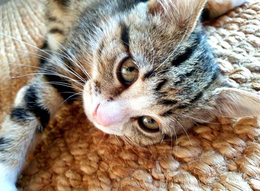 Paisley is a tabby female. She is a cuddly girl and will find you for snuggles and can't resist falling asleep in your lap. Paisley has a sister named Nutmeg and she is the quieter of the two. She still love playing though and is always up for a game with her toys. Paisley would suit older kids, she is not a scaredy cat just appreciates gentle cuddles and would suit curling up next to her forever family and purring. She is currently fostered with her sister Nutmeg, they are looking for a forever home either together or can be separated.