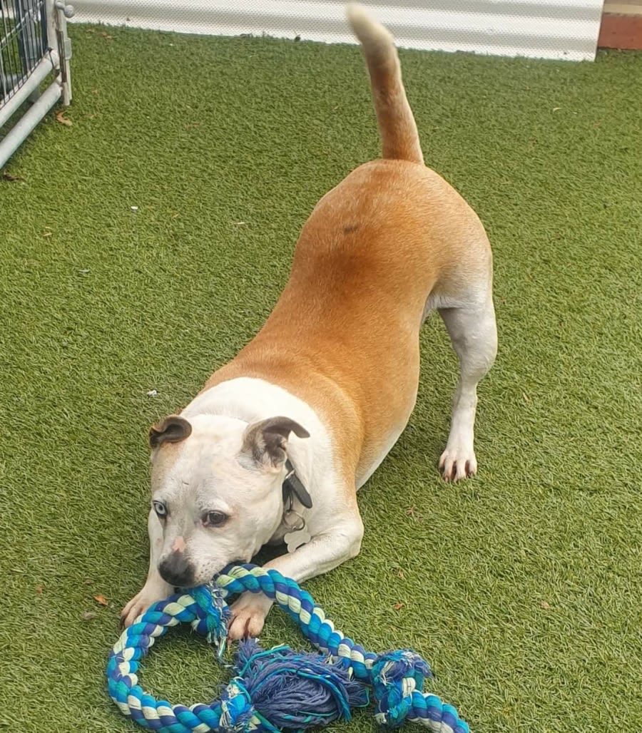 Daisy came into rescue through no fault of her own. This good girl will make an absolute wonderful companion dog for someone looking for a baked potato canine friend.