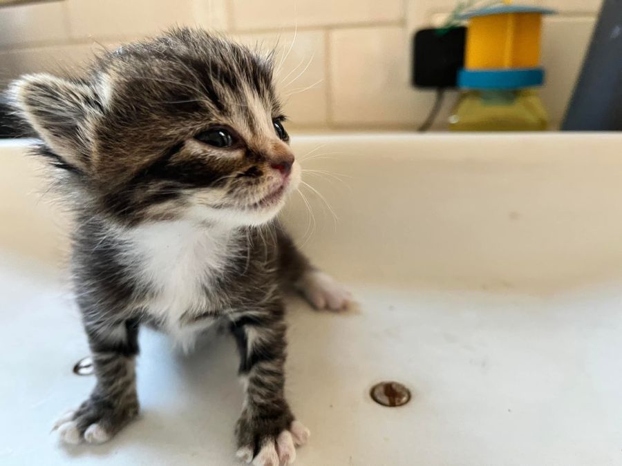 Ira isn’t like other kittens. He developed slowly, it was hard to tell if he was undersized because his family were so much bigger! Our vets have suggested that Ira has physical characteristics similar to a particular breed of cats. We won’t disclose that breed in his adoption post but we certainly will be choosing the right home for Ira with those physical characteristics and future needs in mind.