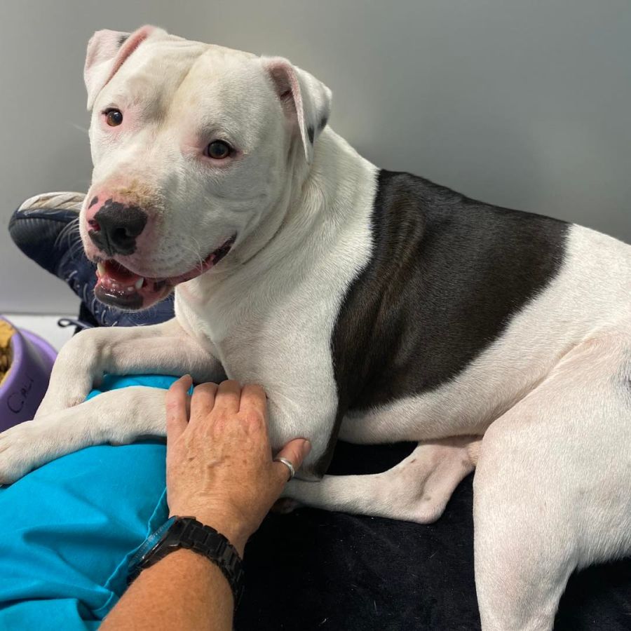 Boomer is a very happy dog who just loves to be around people and get cuddles. He is unfazed by other dogs and cats – he even made friends with the clinic cats when he spent time at Sweet Pea! He loves trips to the beach, playing with other doggy friends and then a big snuggle on the couch after a long day. His little staffy smile will melt your heart and he is such a joy to be around.