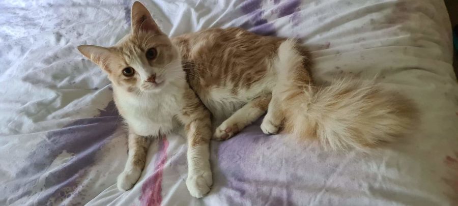 Well this big baby is a lover and not a fighter, Sunny is one of the most versatile cats I have ever met. This boy is a attractive looking guy, with both medium and long parts of ginger and white fur.