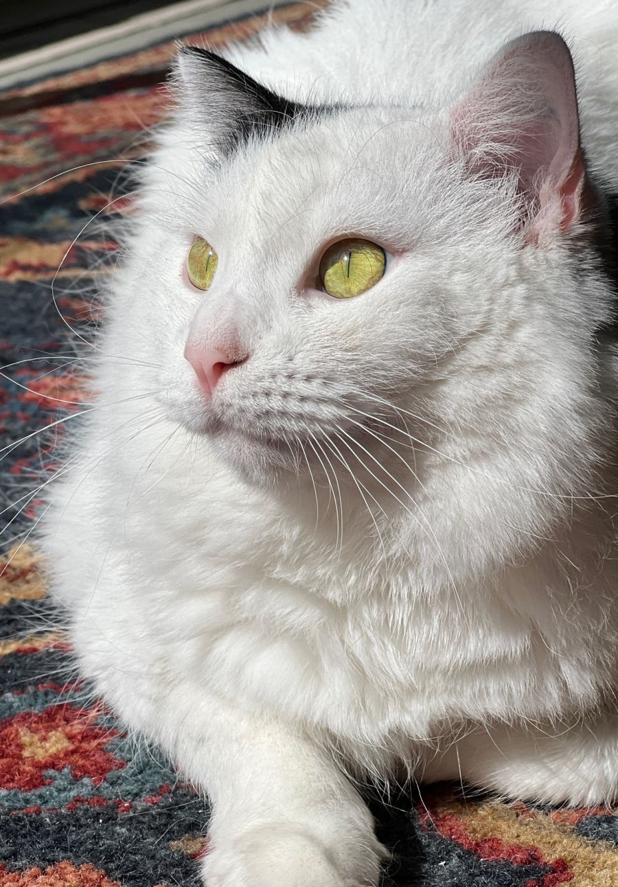 Tilly is a charming and confident young lady who loves to be brushed and fussed. Tilly loves playing with toys, especially aerial ones where she has to reach or jump. Quiet time is also important for Tilly and she likes to sleep under beds, in wardrobes and under throws or clothes left on chairs (check before sitting). Tilly also likes being up high so any ‘catification’ will be well used, she climbs the cat ladder to sleep on top of the bookcases nearly every day.