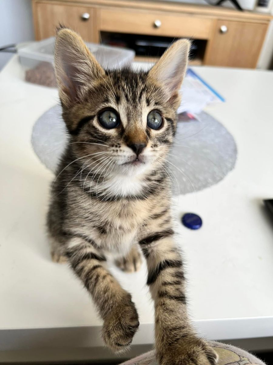 Hi, my name is Aquarius, i was dumped at a local vet clinic at 2 weeks old with my 2 brothers and was taken in by the lovely staff members there. I am a very cheeky girl who loves to play with my toys, brothers and my foster mum. I love a good cuddle and i am a purr machine. O love adventures around the house and surprising my mum by jumping out and trying to scare her.