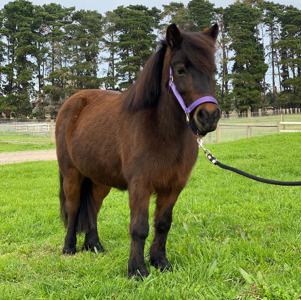 She is happy with a patient farrier and handlers who can give her confidence. Pebbles can sometimes be a bit nervous to catch and may need patience and a catch lead in large paddocks.