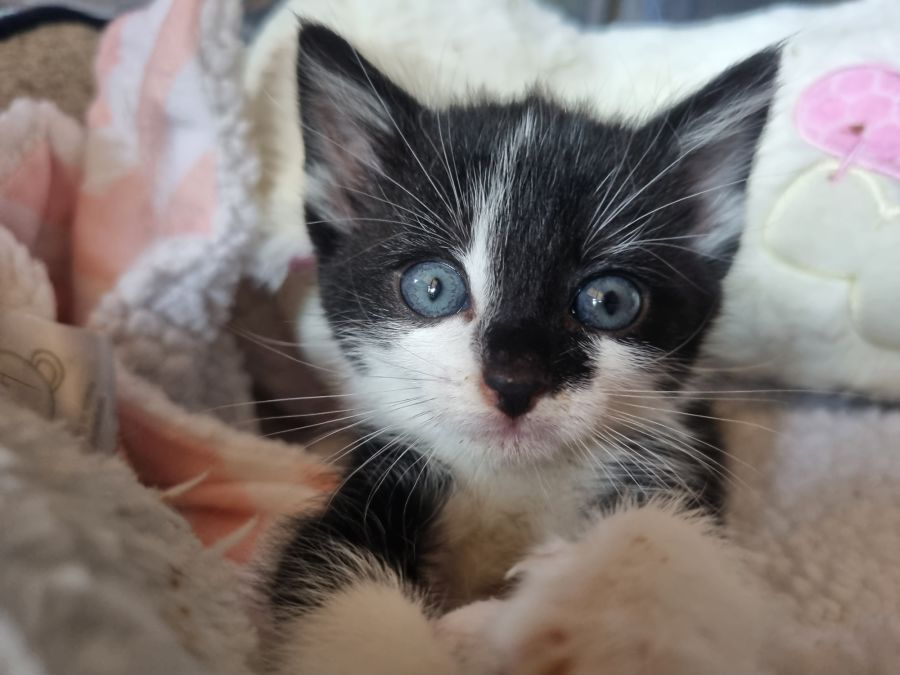 Badger was emaciated and had a difficult start to life, she is not thriving. She loves to eat her wet food and enjoys finding you to see if you will share your food with her. Badger is keen to run around and enjoy life, she will need a lot of interaction with her owner if she goes as a single kitten. She seeks out warm spots to sleep in, she loves cuddling with her siblings and sticks her legs in the air as she sleeps. Badger prefers two litter trays at least; she is super clean and appreciates it when the litter is changed often.