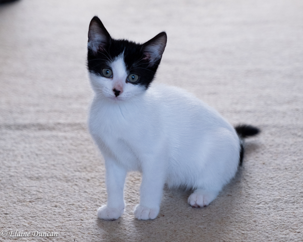 Midnight is a handsome little boy with black patches. He is the first one into every room the second the door opens. Blink and you'll miss him. He's lightning fast and extremely curious, always up for an adventure, loves exploring and frequently just a blur of zoomie-ness as he tears past just loving life. He is lots of kitten-y fun and will absolutely provide loads of entertainment.