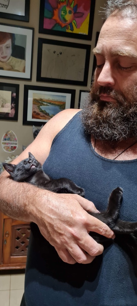 He is super duper high kitten energy. He is non-stop unless being held or cradled. A very confident and loving little guy looking for his dream family..