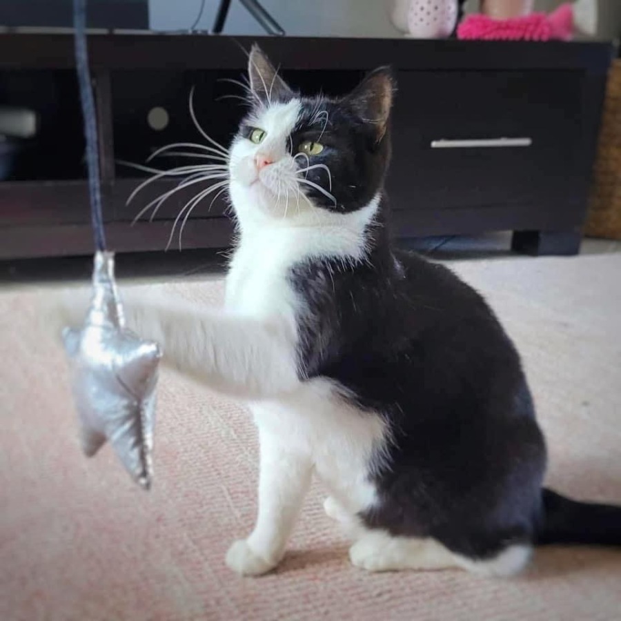 The other cats in my foster home have not yet realised how important I am, they expect to share food!? I am not keen on that yet, but I put up with them the rest of the time. I would be happy being the only cat in the house with some soft toys to play with, but with the right introductions I could get on with another friendly feline. One of these cats here will wander around with me sometimes, itās not too bad.