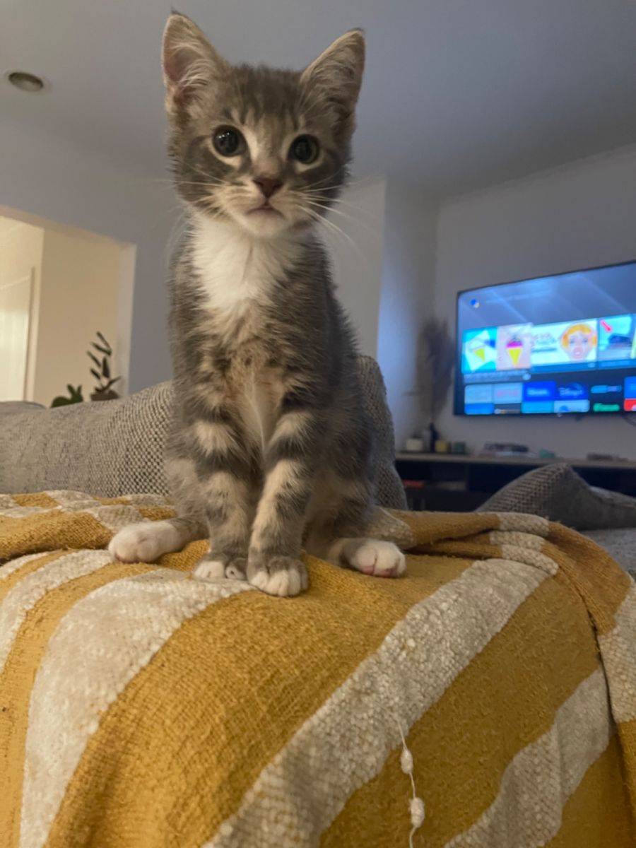 I enjoy playing with you and by myself with my cat toys. I love my food and enjoy meal times. Im very loving and often fall asleep on my foster carers lap.