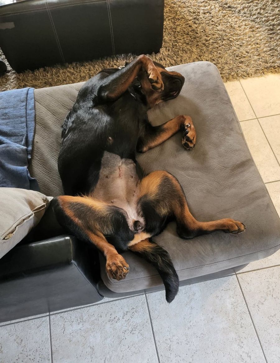 Mia is good with other dogs, good with kids, but doesn’t like cats or pocket pets. She is a playful, clever, and gentle girl who will make a wonderful family pet. She is very well behaved and knows a number of commands such as sit, wait for food, wait at door, shake hands, spin, lay down, leave it, give, walks well on lead and is crate and house trained. She is a typical sensitive rotti girl that likes to please so not to get in trouble, she is food motivated and very easy to train.