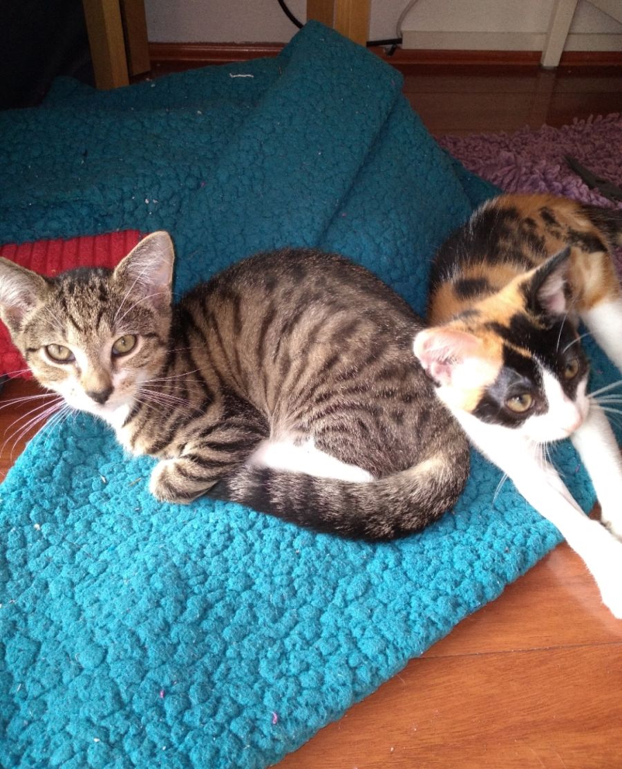 Maybel is just as playful as Hunter but not as brave and will hang back until Hunter has checked things out first. Maybel is a little bit quirky and will happily play by herself or with Hunter or with her carer. She loves her food and will eat hers, Hunter's and the carers cats food if given the chance. She is happy to find a hidden spot to sleep in and is just as happy to sleep next to me on the couch. Maybel is not a lap cat but will sleep on the top of the couch behind the carers head and lean on me. Maybel is fascinated with looking into my eyes and then tries to touch my eyeballs! She does not like to be left on her own and will cry if she can't find Hunter (usually because he escaped into my room when she wasn't looking).