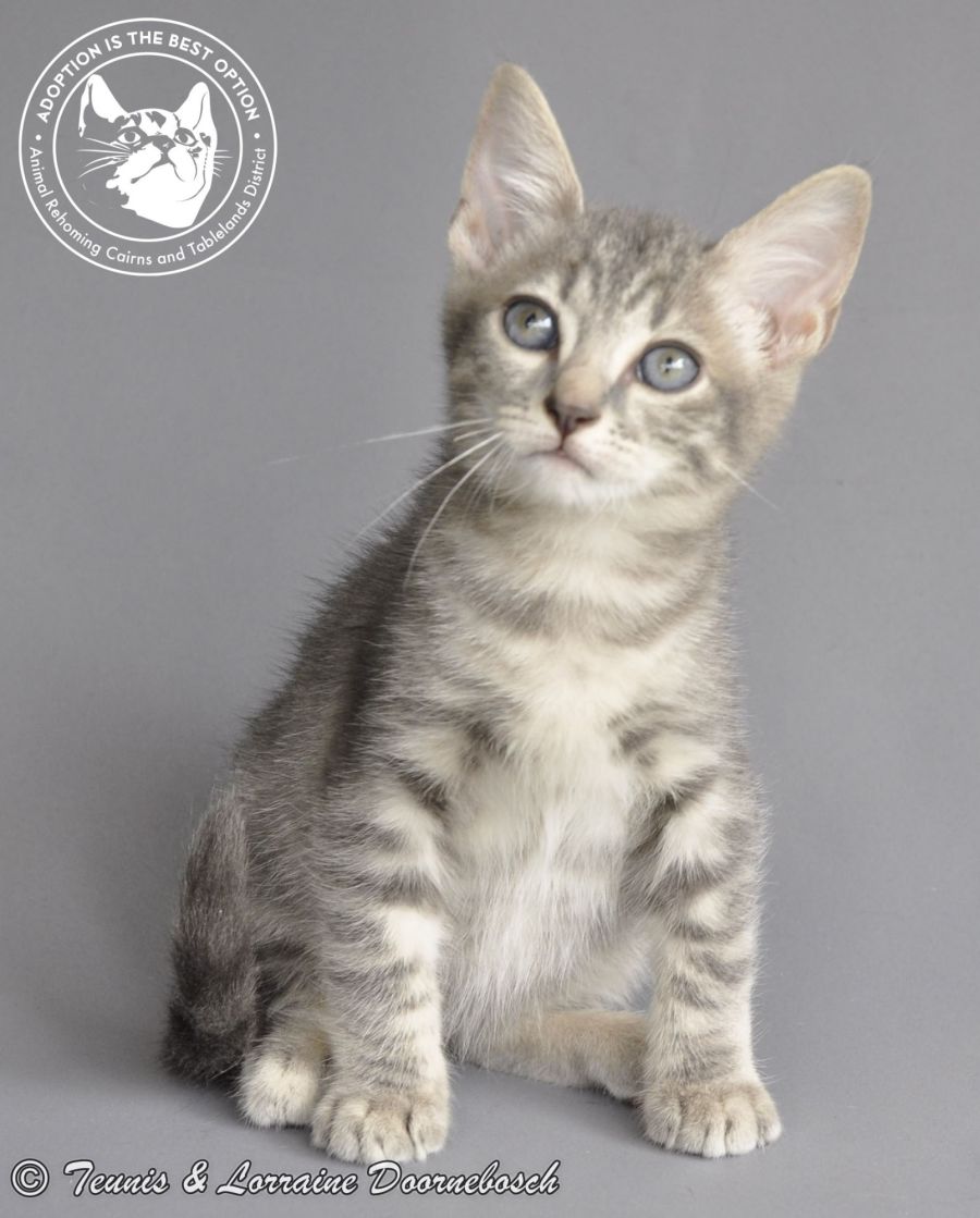 Kyle is one of four babies who came to us from the pound with their mumma. Trinity is a great mum but now the kittens are ready to find their forever homes. Kyle is a little shy with humans to start with, but once he knows he can trust, he surrenders to the fuzzy feelings from having gentle hands stroke him and soon starts to purr. Kyle will need gentle coaxing because he's always looking for his big brother Keegan for a game. He will become a loyal, loving pet for the right family once he makes himself at home and feels safe to play freely.