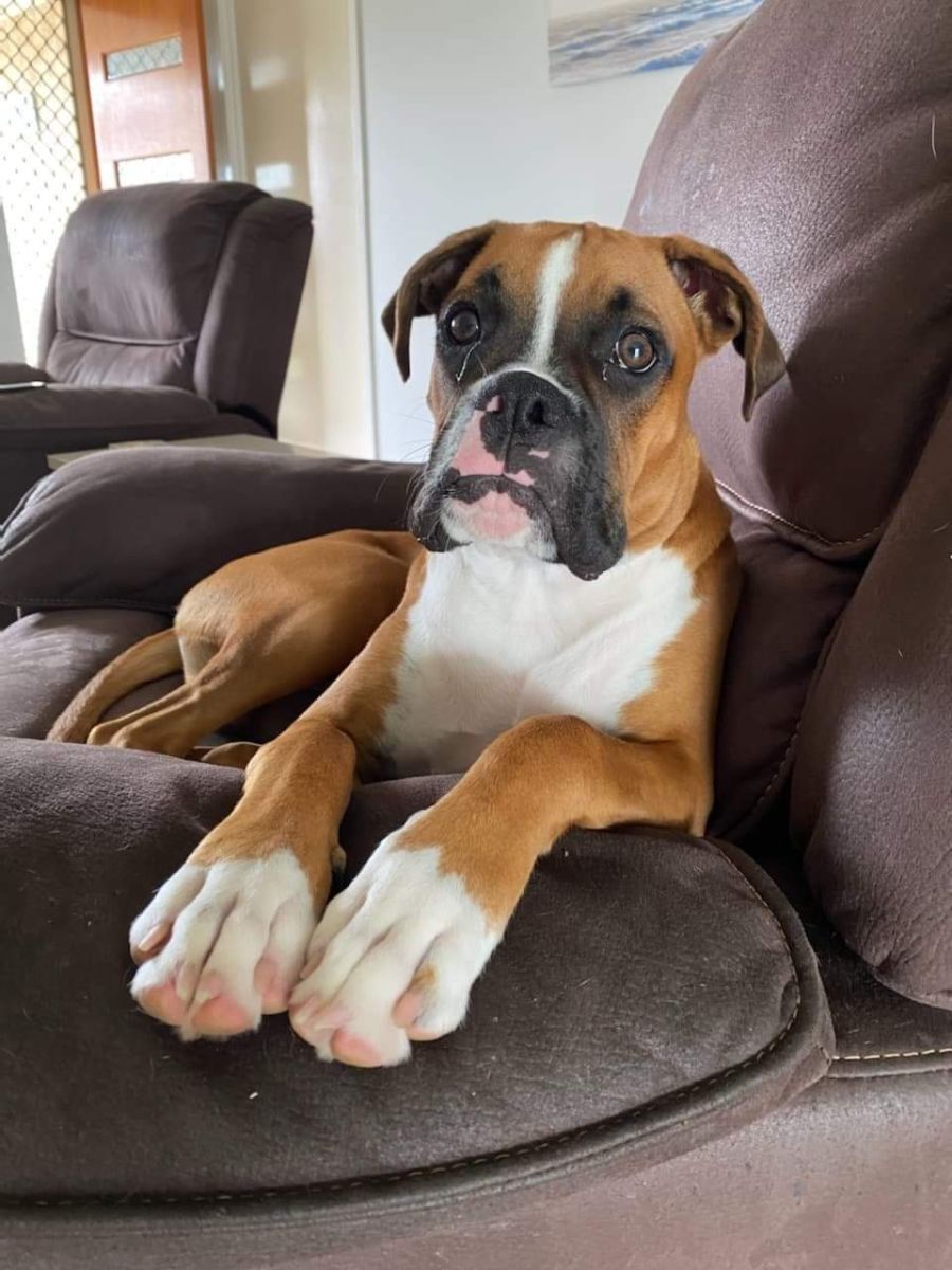 Whilst Murphy is toilet trained, he does have the occasional accident....usually when it is raining as he doesn't want to get his precious paws wet...who can blame?!?.... Murphy has recently finished puppy school and would benefit from continued reinforcement of his training. If you have a young desexed female dog of similar energy levels Murphy would be the perfect 'boxer brother'.