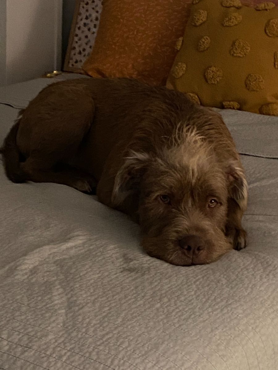 He will then get a walk when they come home from work to burn some energy. He is lead reactive to dogs and loud noises, so will need a confident hand to walk him. After spending a few hours after dinner inside, he will head into his crate in the evening.