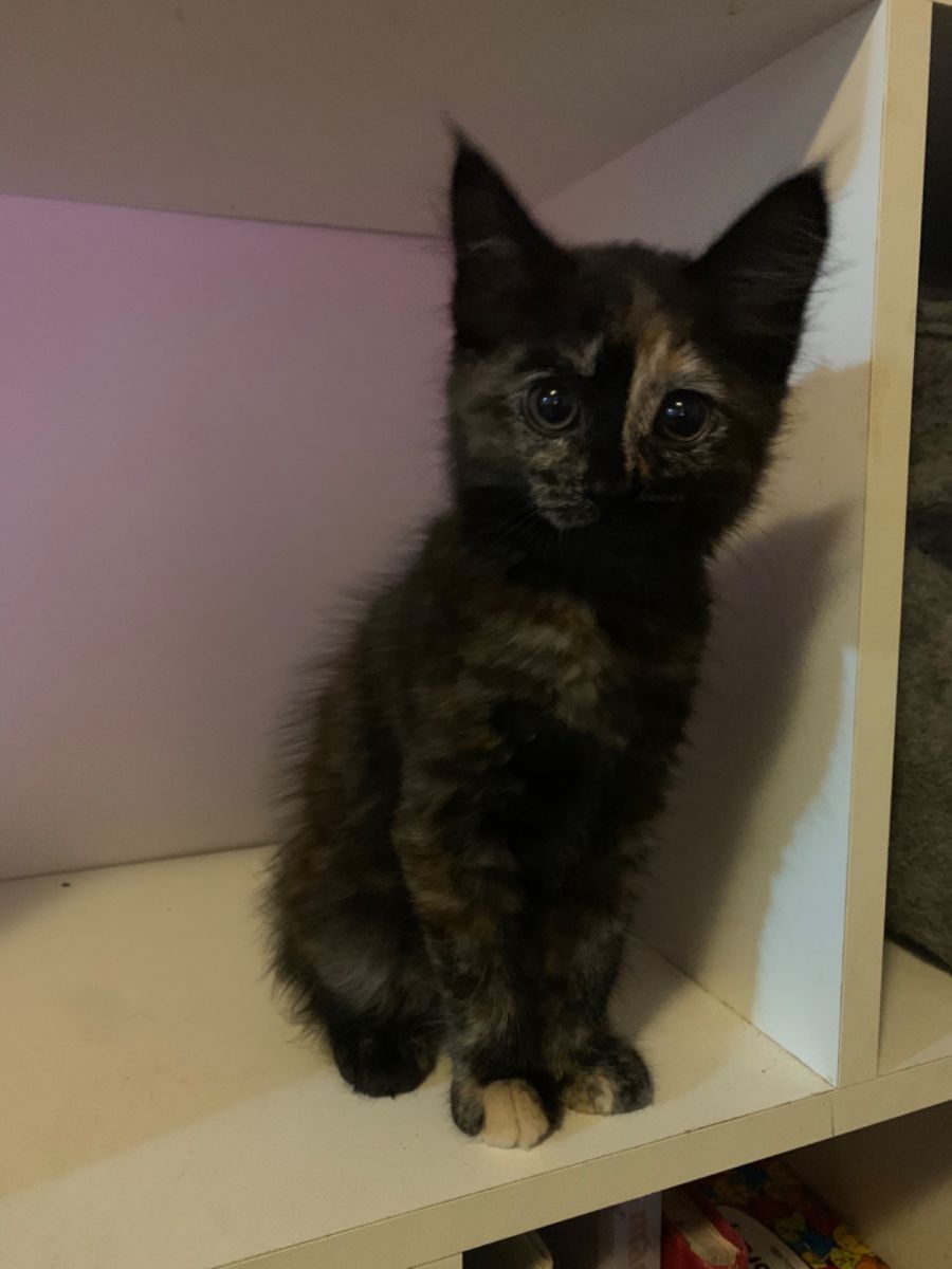 Poppi is very social and has blended in seamlessly with the resident cats. She’d love a kitten friend, either one of her siblings or another friendly kitten.