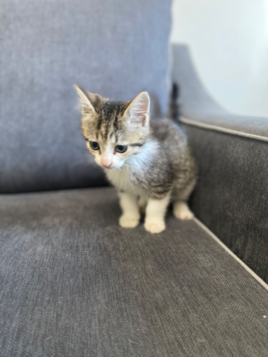 Elkie is a bit of a wild child. She would do well with a higher energy household. She has been microchipped, vaccinated, wormed and flea treated. Please note her follow up kitten vaccinations are not included in the adoption fee.