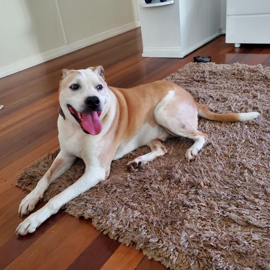 Squid is a 10.5 year old male Boxer x Staffy with the most gentle loving nature 💕