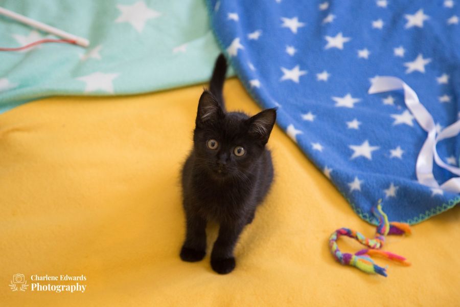 Flis came from a pound as a partially handled kitten who has settled quickly into care. She is extremely affection once she is comfortable with you, wanting lap cuddles and constant purring. She is a kitten who loves her games and her food and will probably always enjoy games as black cats tend to do.