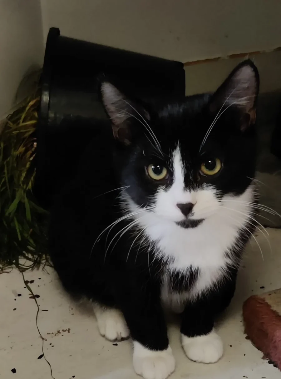 Bean is a black & white kitten born between Christmas & New Year. He is a real character, quite cheeky and very plucky. He loves to play and will sometimes hiss to show you how courageous he is! Beneath all this bravado however is an affectionate kitten who will entertain you for hours.