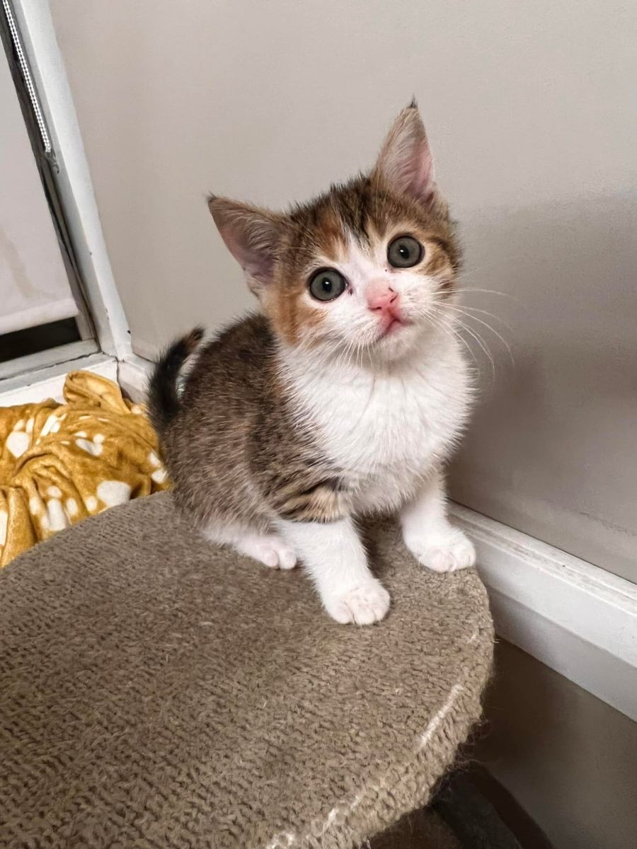 She is just the cutest sweetest little girl. She loves to take on the bigger kittens in play, loves running around and loves sleeping with her hottie bottle. She’s the first to the food in the mornings and is litter trained.