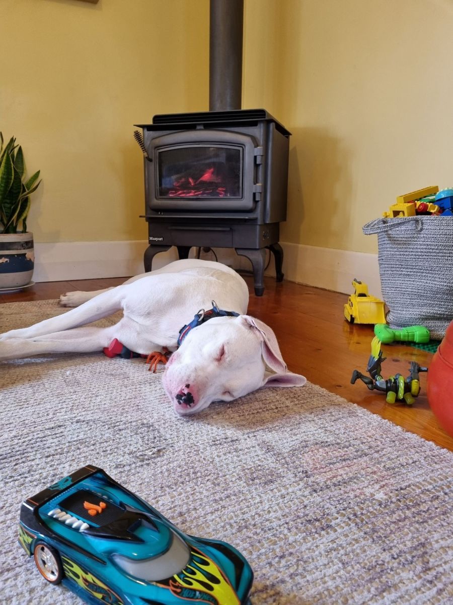 Arnie is a beautiful 3yo Great Dane x Mastiff with A LOT of love to give. He just adores kids, currently living with toddler twins, as well as his humans. He is a typical Mastiff/Dane in that he loves and often Velcros himself to his humans and will push boundaries every now and then. He is a giant softie though who likes nothing more than being close to his people. He has grown up with human babies and toddlers, kittens, and cats in the past, however, his new family must keep up his very consistent training and boundaries with him to ensure he is a balanced dog overall.