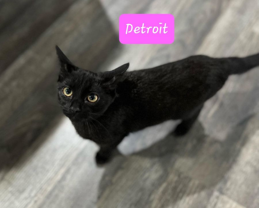 Detroit is a pure sweetheart with a big LOVING personality. She is an active and playful kitten. Currently in foster care with her two brothers, an adult cat and Izzy the terrier.
