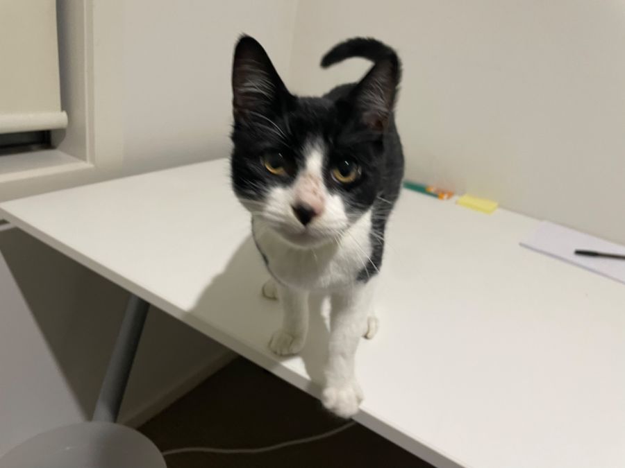 He enjoys eating, playing with his toys, laying on your lap and shoulders, rearranging his litter tray, toys and beds.