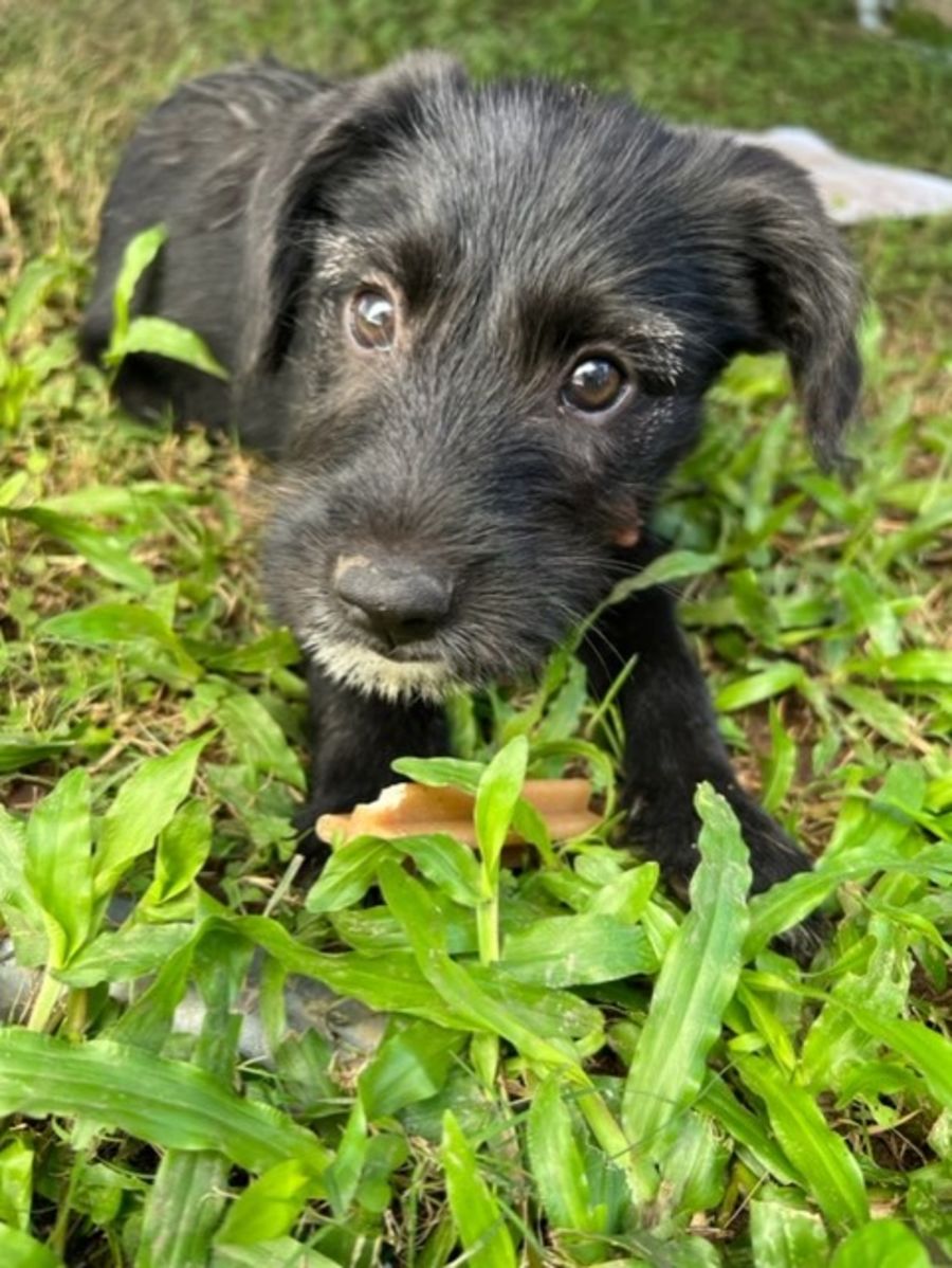 Iris is very well behaved, is very food oriented and trains so beautifully. She mastered the doggy door in two days at her foster home, and already sits beautifully. Iris is crate-trained and sleeps in there for naps. She sleeps through the whole night with her sister. Toilet training is going well.