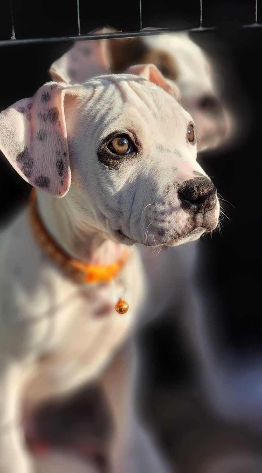 Chuckles was born deaf which means he will learn to respond to hand signals.