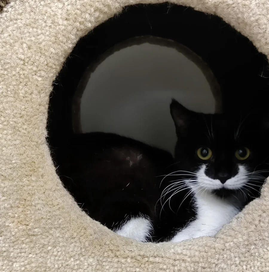 Dynamo is a delightful black & white kitten who is hesitant on first meeting but soon warms up. He especially likes to rub his cheeks on your hand and shows his enjoyment by purring loudly. Dynamo was found by a good samaritan living on the street with Jackson, his brother, who was recently adopted.