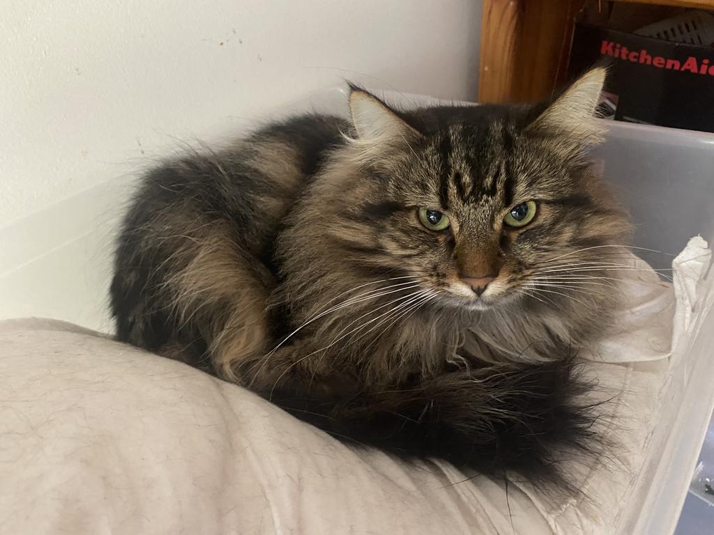 Sassy has gone from being a cowering ball of fear to a cheeky floofy girl who'll demand dinner, and sit on pillows and in boxes. She's still very cautious of new people, and not overly fond of being picked up... but the difference to when she first came in is incredible.