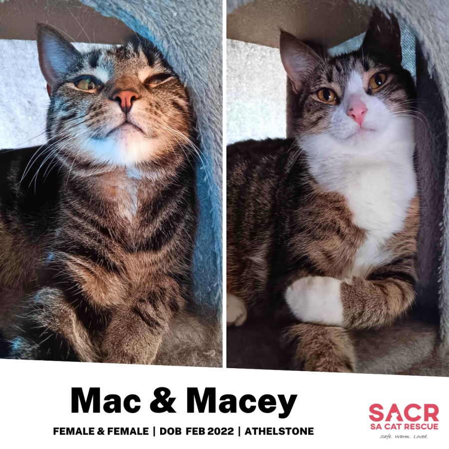 Mac & Macey's adoption fee is $120 which includes desexing, microchipping, parasite prevention, and F3 vaccination.
