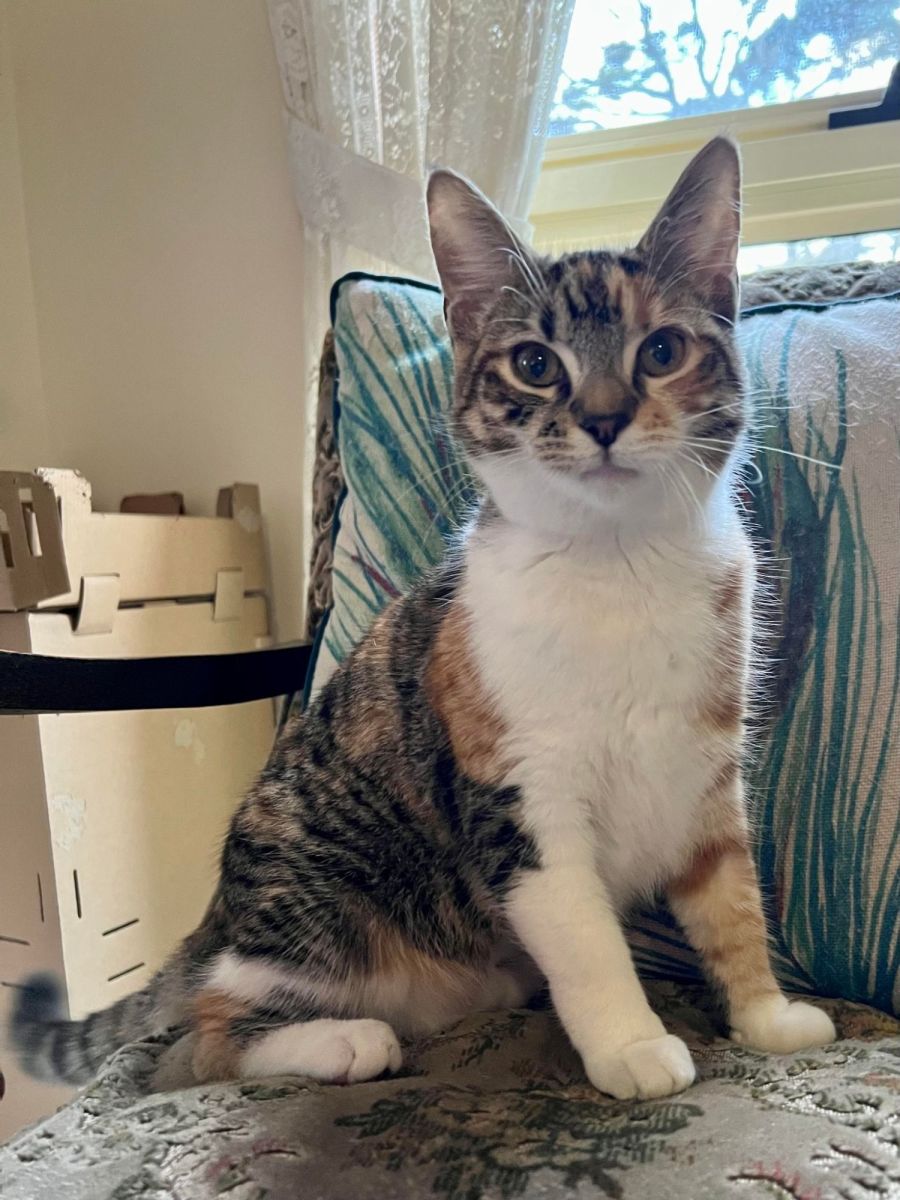 Biscuit is approximately 5 months old, she is a calico shorthair young kitty, desexed, microchipped, vaccinated x2 and ready for her purrfect home!