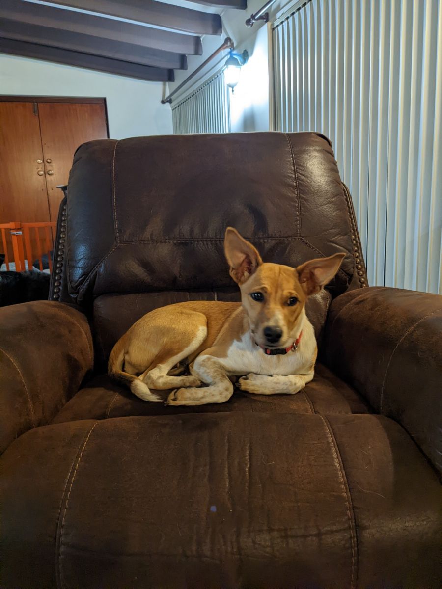 Minx is an indoor dog. Loves to sleep on a warm lap or share the sofa. She will require good fencing as she is very tiny and can fit through any small gap.