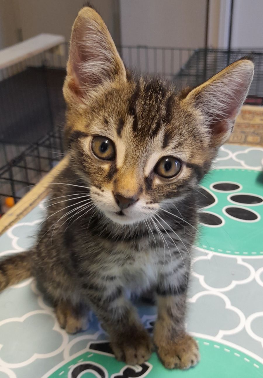 My name is May and I'm an 8 week old girl. I'm looking for that perfect someone to call my own. I'm one of three kittens and I am a beautiful dark grey tabby. I am vaccinated, microchipped, flea treated and wormed. I'm a good girl and use the litter tray at all times. I love my wet and dry food. I'm currently living with my foster carer, at Caboolture. I love to purr like a V8, this means I am happy. I get on with all the older cats around me and we all play together. My adoption fee is $150 which will cover my desexing, and 2nd Vaccination.