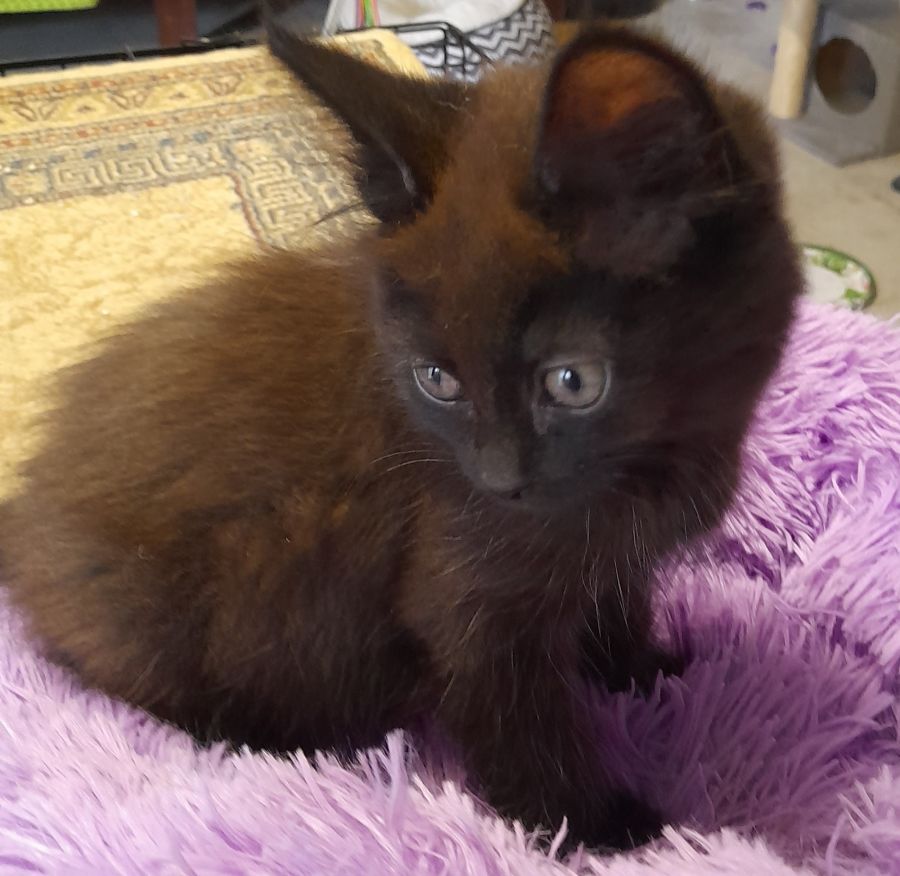 Hello, I'm Mickey and I'm 11 weeks old little boy. I'm looking for that perfect someone to call my own. I'm one of four kittens. I've got lovely medium length dark fur. I am vaccinated, microchipped, flea treated and wormed. I'm a good boy and use the litter tray at all times. I love my wet and dry food. I'm currently living with my foster carer, Jodie, at Caboolture. I get on with all the older cats around me and we all play together. My adoption fee is $150 which will cover my desexing as well, plus my second vaccination.